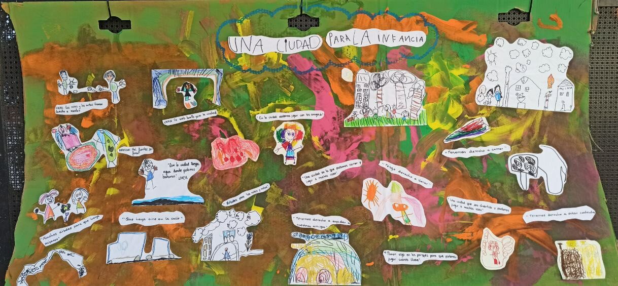 En la EIM Duende, el grupo de 3 años ha celebrado el día compartiendo bailes y expresando de forma plástica su visón del mundo, en la calle adyacente al grupo, reivindicando la presencia de la infancia en los espacios públicos. Mientras tanto, los grupos de más pequeños han descubierto la ciudad a través de una propuesta virtual, con la proyección de imágenes significativas para el grupo. Permitiendo que la ciudad entrara en la escuela y se convirtiera en un espacio de juego, invitando a los protagonistas a interactuar de una forma sensorial y emotiva. Sus palabras, comentarios, miradas y reacciones espontáneas cargadas de emoción nos hablan de la importancia de su mundo más cotidiano, más cercano: «Ese es mi cole, Duende”, “Agua del río”, “El parque”, “Casitas…”, “El castillo de Granada, el castillo de la Alhambra…»